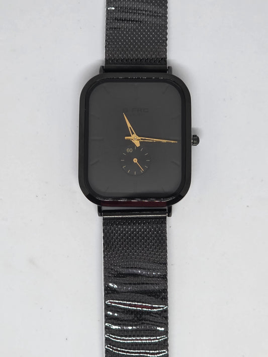 CENIT – Reloj G-Force Negro Minimalista con Malla Metálica y Detalles Dorados